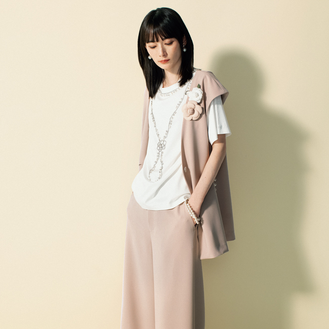 26 vest ¥35,200 BUY cut and sewn ¥29,700 BUY pants ¥39,600 BUY earring ¥9,900 BUY corsages, bracelet reference items