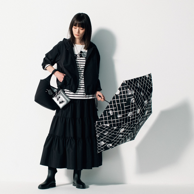 11 jacket ¥44,000 BUY cut and sewn ¥25,300 BUY skirt ¥39,600 BUY necklace ¥7,700 belt ¥17,600 BUY bag ¥19,800 BUY charm ¥13,200 BUY umbrella ¥17,600 BUY shoes ¥19,800 BUY
